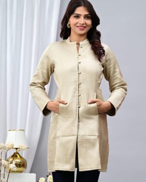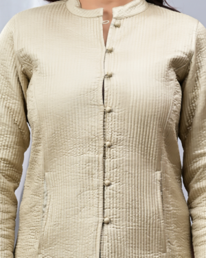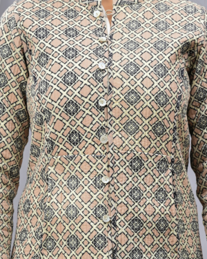 Timeless and versatile, our Quilted Reversible Jacket features hand block-printed cotton and luxurious silk. With a classic collar and light quilting, it offers two looks in one — bold or subtle — perfect for both professional and casual wear.