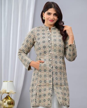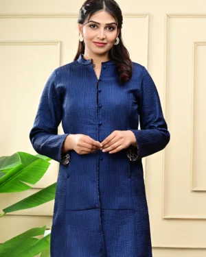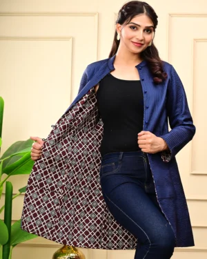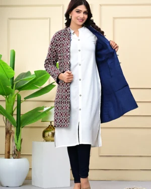 Layer up in timeless style with our Blue Quilted Reversible Jacket — handcrafted in block-printed cotton and luxurious silk for versatile, all-season elegance.